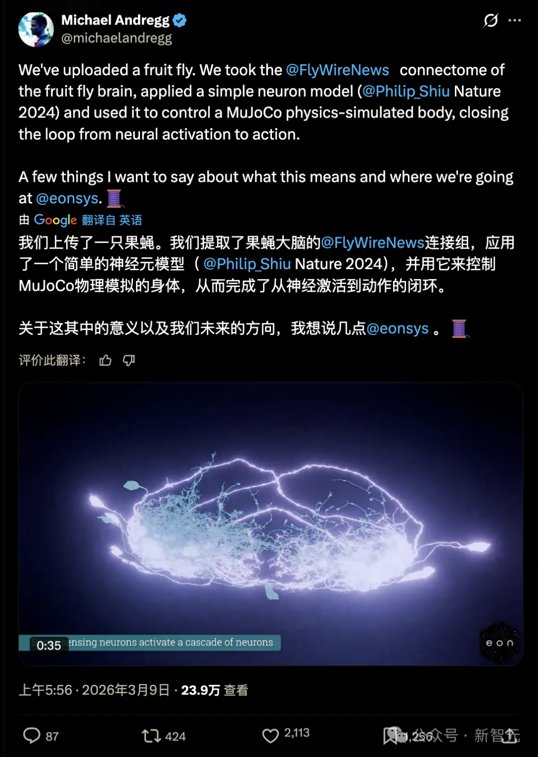 Eon 的首席科学家 Philip Shiu 和他的团队,在《自然》(Nature)上发表了一篇重磅论文《A Drosophila computational brain model reveals sensorimotor processing》(《果蝇计算大脑模型揭示了感觉运动处理》)。