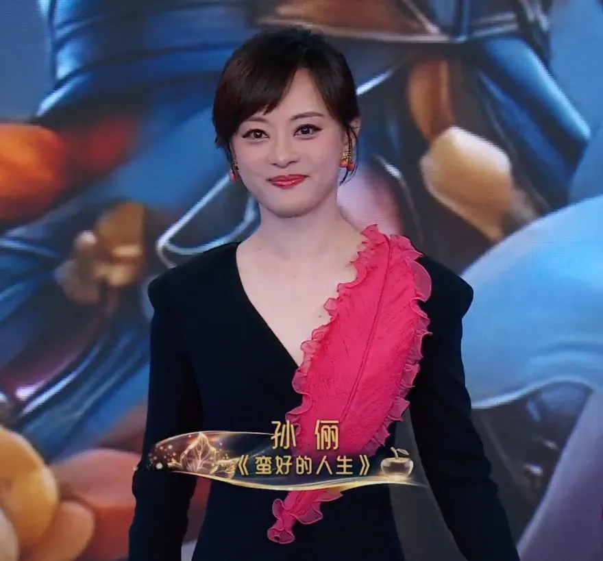 43岁的孙俪有点发腮、有点浮肿,粉底有点白了,眼妆有点浓了,连带着口红颜色都过于鲜艳了。
