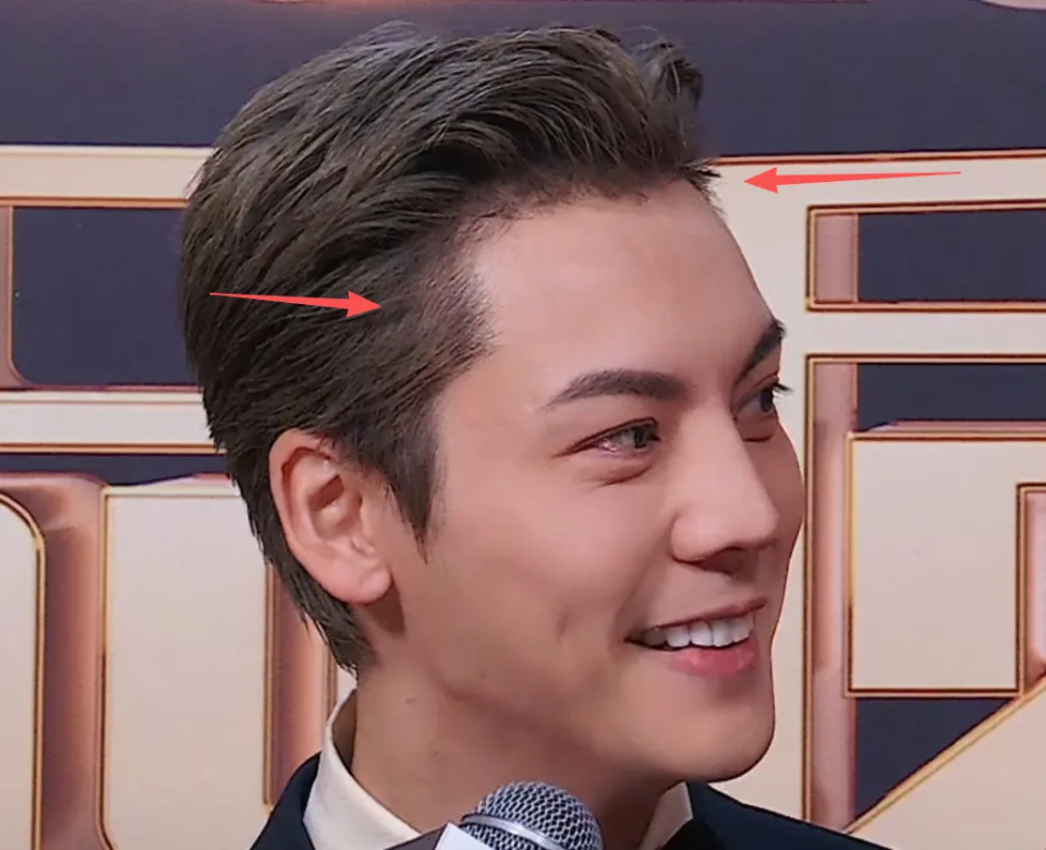 只是镜头一拉近,怎么感觉陈伟霆贴了假发?有人知道陈伟霆发际线附近是什么吗?看着有点不对劲呢。