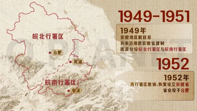 所以,文献中会有一句很“诡异”的话——“1952年,安徽省成立,省会设于合肥。”意思就是在这之前,安徽正处于“消亡状态”。