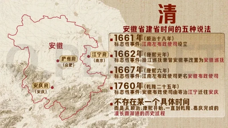 首先,最最最“原教旨”的安徽省,直到清朝才出现。具体到哪一年,也是多达五种说法!
