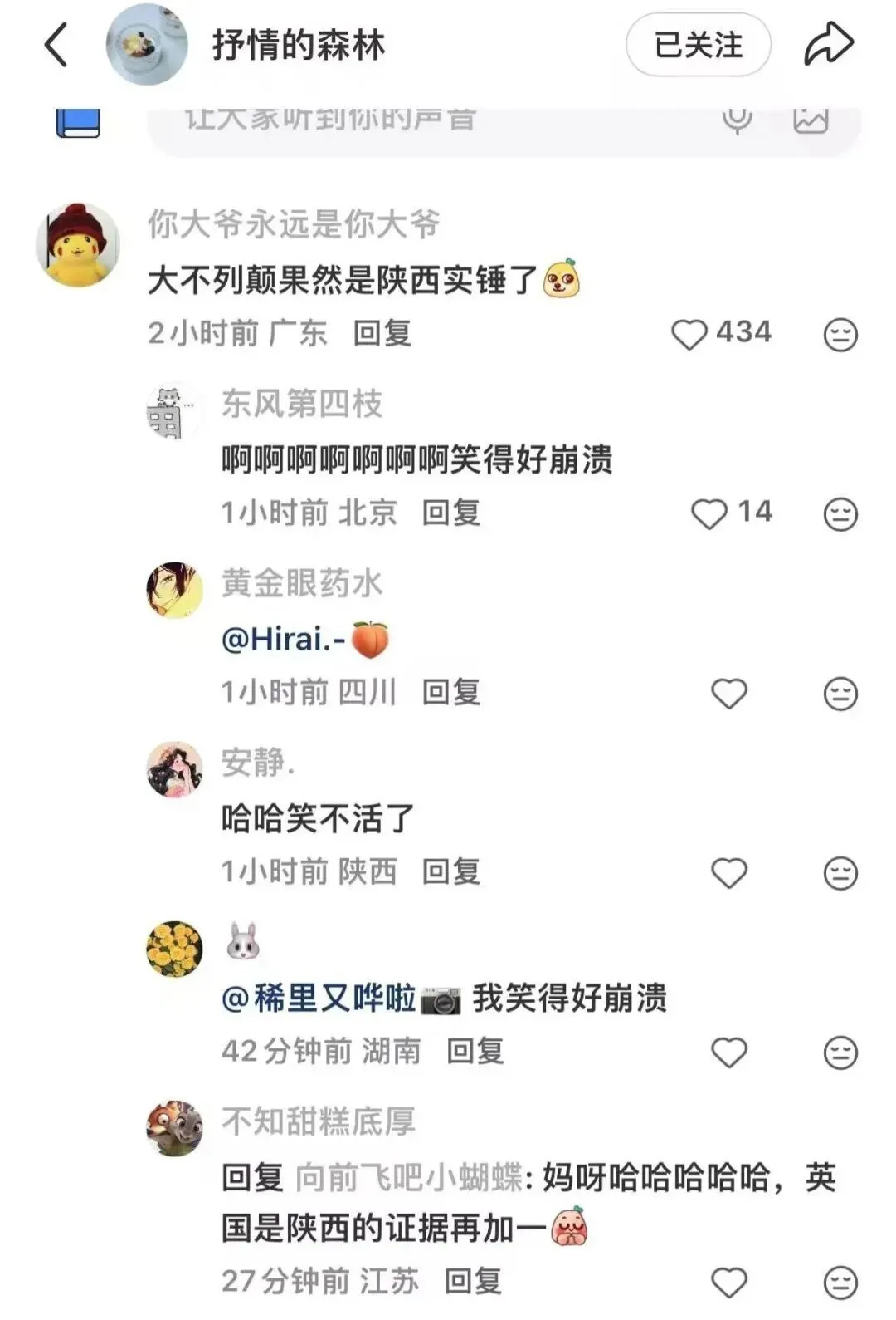 评论区一片欢乐的“大不列颠是陕西实锤了”、“英格兰归陕西没跑了”。