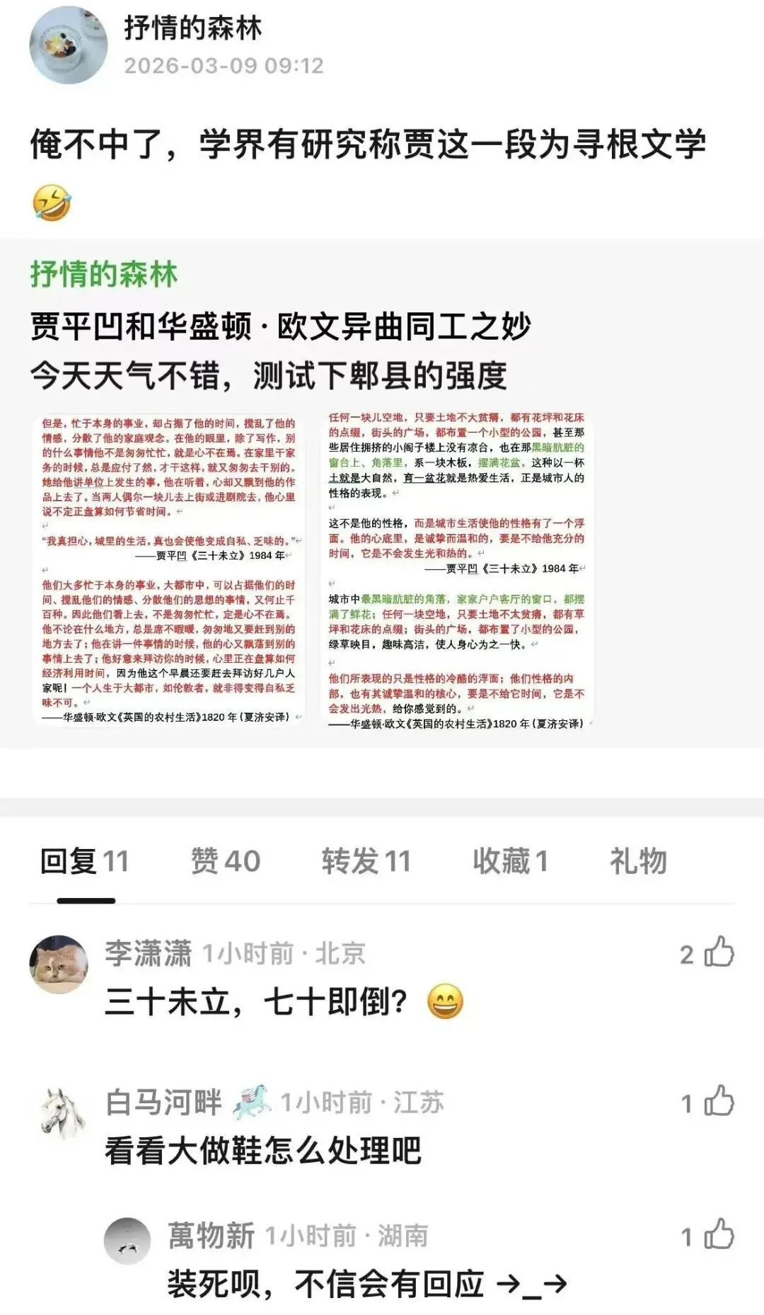 最绝的是,学界曾将贾平凹这类描写誉为“寻根文学”——为现代城市人寻找精神故土。现在真相大白:他寻的这根,不在黄土高坡,不在商州,而在泰晤士河边,在十九世纪一个美国作家的笔记本里。