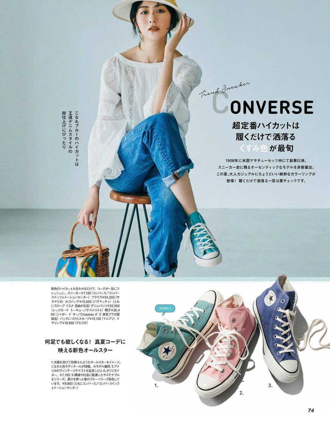 白色宽领镂空上衣,最舒展的气场尽显而出,还有能散发出一种大女人的高级气质,搭配一件深蓝色牛仔裤,还能营造一种时尚知性、又干练的氛围感,搭配一双深蓝色帆布平底鞋,让你的整体穿搭更有个性。