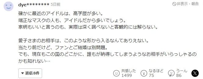 也有网友表示:我们并不关心这位偶像是谁,只希望最终爱子公主能够觅得良人,不要沦为政治联姻的牺牲品。