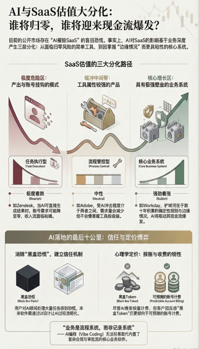 与会者认为,当前的恐慌有些脱离现实,AI并非SaaS的终结者,而是行业加速分化的催化剂;未来的软件竞争不仅在于模型能力,更在于业务逻辑的壁垒与定价心理学的博弈。
