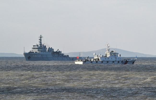 12月的一次演习期间,中国船舶在台湾附近巡航。图片来源:ADEK BERRY/AFP/GETTY IMAGES