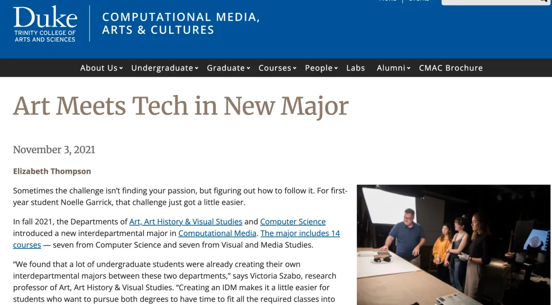 比如,杜克大学的“计算媒体”:这可不是简单的传媒专业。学生既要学视觉艺术,也要学计算机科学(CS),研究的是AI可视化、游戏开发和交互设计。它培养的是能够将创意、美学和技术融为一体的数字内容创造者。