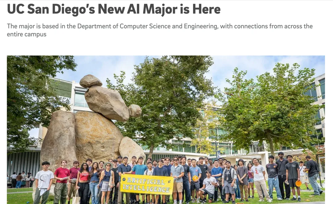 加州圣地亚哥分校2025年招收首届AI本科专业