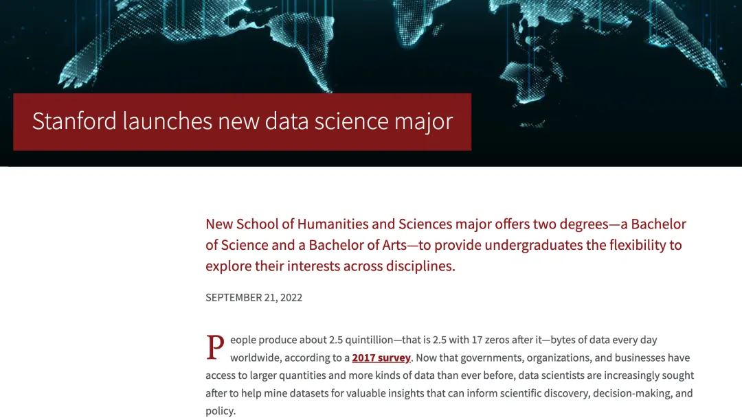 斯坦福大学的数据科学专业提供理学学士和文学学士两个学位方向