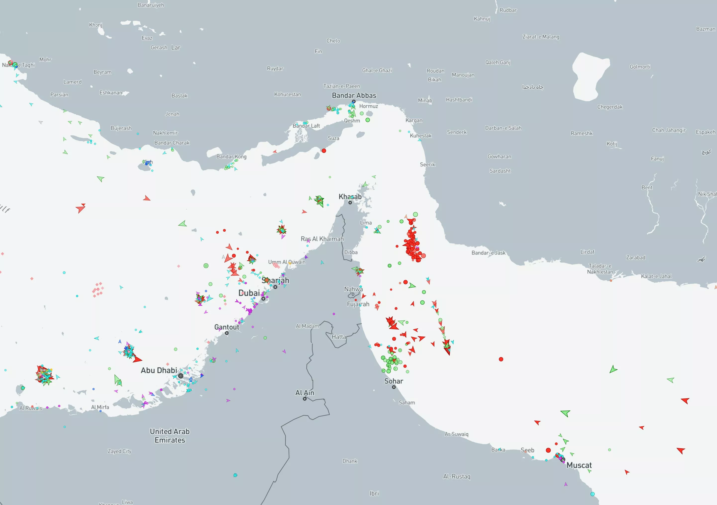 霍尔木兹海峡两端累积大批等待但不敢通过的船只。(Marine Traffic)