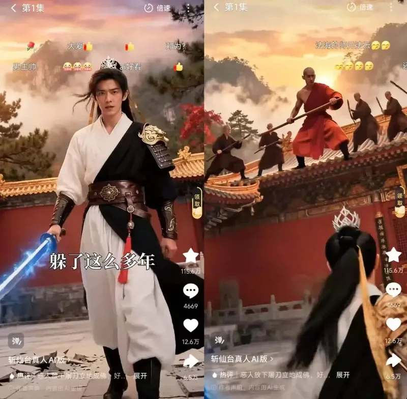 一般来讲,一部真人短剧的制作成本在60万上下。即使制作团队再会玩命儿压预算,从牙缝里抠钱,十几万,至少也是要的。编剧、导演、演员、摄像、后期等等,这些人的工资,你要算吧?化妆、道具、置景、场景、宣发等等,从前到后,样样都得花钱。而做AI漫剧,又因为可以省掉咱们刚刚提到的演员、场景等绝大多数开销,所以,它的成本大概是真人短剧的1/3,也就是在5万-20万左右。以前段时间比较出圈的一部AI漫剧《斩仙台真人 AI 版》为例,它的制作团队一共有12人,耗时30天,算力成本在10万元,才肝完这81集。