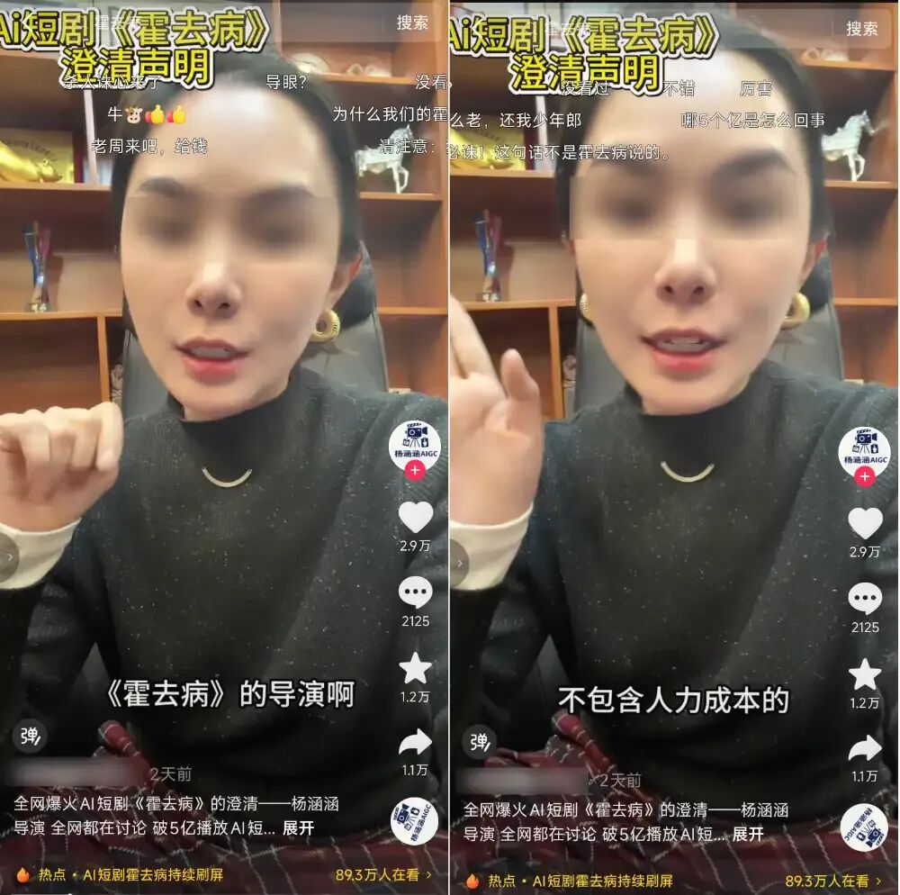 于是,就在全网群嘲的时候,这部AI漫剧《霍去病》的导演@杨涵涵出来辟谣了。