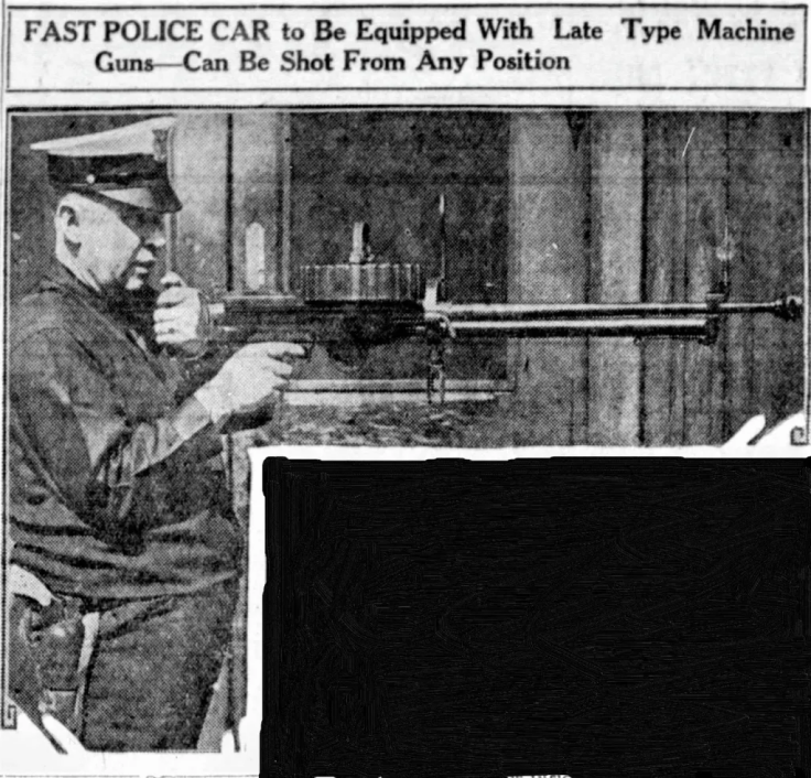 当然首先将这个需求落实了的,还是美国警察。由于黑帮火并警察得管,手里家伙不如别人,那怎么管?所以1925年,美国纽约警察率先将武装巡逻车投入使用,随后美国多地警察迅速效仿。每辆巡逻车布置三名枪手,24小时全天轮班执勤,巡逻车上除了正常装备左轮手枪、霰弹枪、催泪弹之类外,还有刘易斯机枪,你没看错,就是真正的轻机枪。实话实说,芝加哥打字机再厉害,面对刘易斯机枪也得甘拜下风。此外,车上装备了无线电,还有通信火箭,绝对是警用武库车。