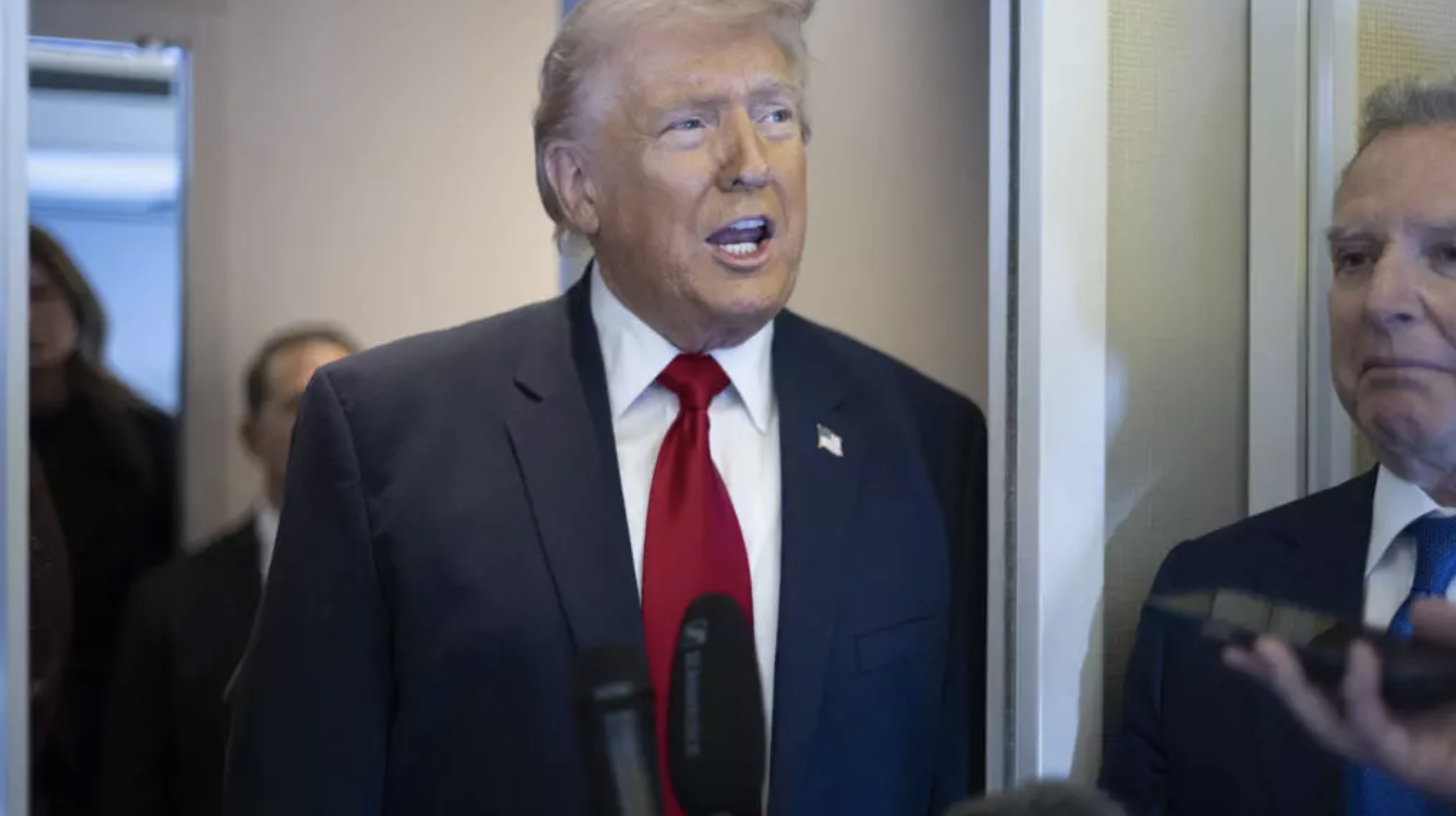 Le président américain Donald Trump s'adresse aux membres des médias voyageant à bord d'Air Force One alors qu'il se rend à Miami le 7 mars 2026. © Roberto Schmidt / Getty Images via AFP - ROBERTO SCHMIDT