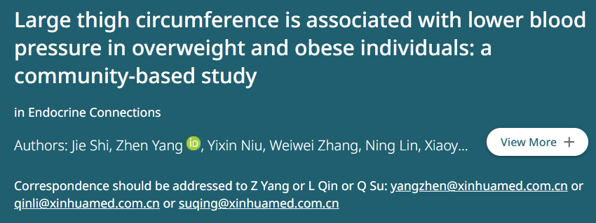 2020 年,上海交通大学的研究人员在国际期刊《内分泌联系》(Endocrine Connections)上发表研究显示,在超重和肥胖的人群中大腿越粗,高血压风险越低。