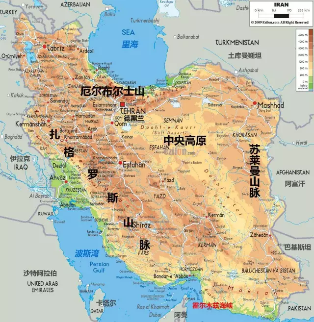 境内90%的土地是厄尔布尔士山、扎格罗斯山等山地环绕着的中央高原,只有里海和波斯湾沿岸有一点可怜的平原。