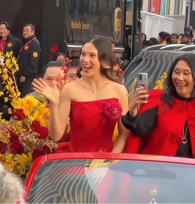 她以巡游总指挥(GrandMarshal)的身份登场,坐在一辆铺满鲜花的敞篷车里向人群挥手。当谷爱凌乘坐花车经过时,沿途观众纷纷举起手机拍照,现场气氛明显被推向高潮。