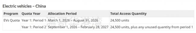 新政策设立了为期一年的进口配额制度,总量49,000辆,分两个阶段实施。
