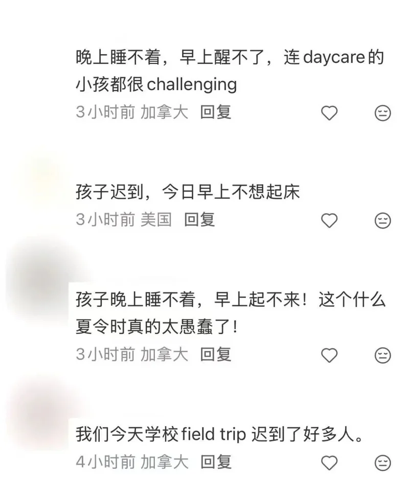 家里有孩子的更能感受到这一小时的影响,有家长分享,夏令时一来,送孩子去学校的时候发现每个小孩都呆头愣脑的。