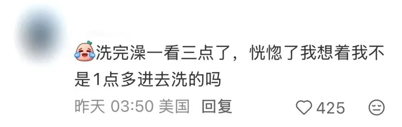 还有人洗完澡一看 3 点,一下就恍惚了,心想难道自己不是 1 点多进去的吗?