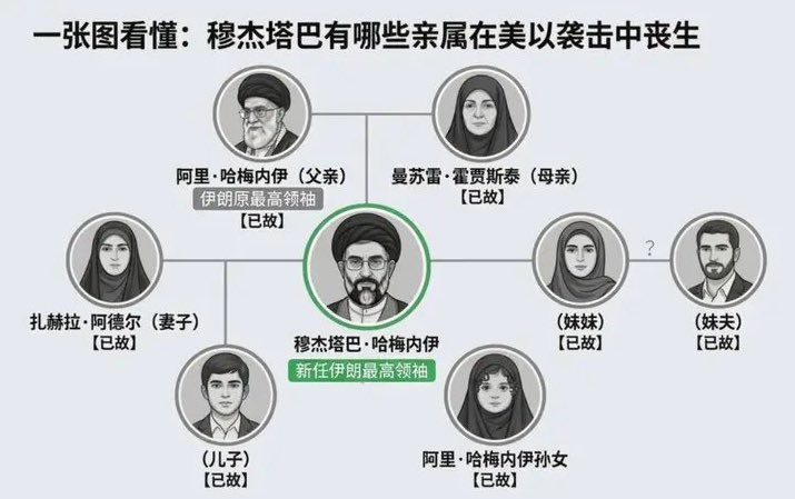 伊朗最高层,把这张图给伊朗人看,并给所有伊朗人说,中间的这个人,他的所有直系亲属,都死了,就他自个还活着。
