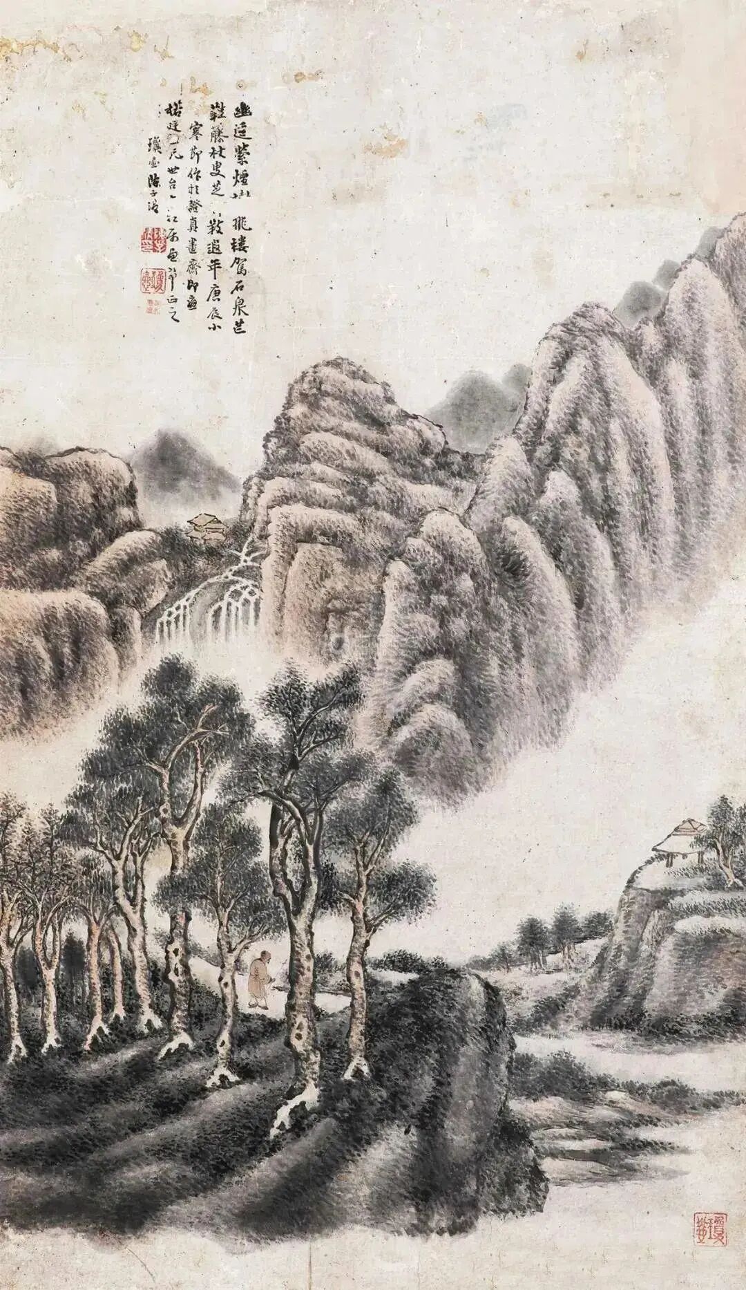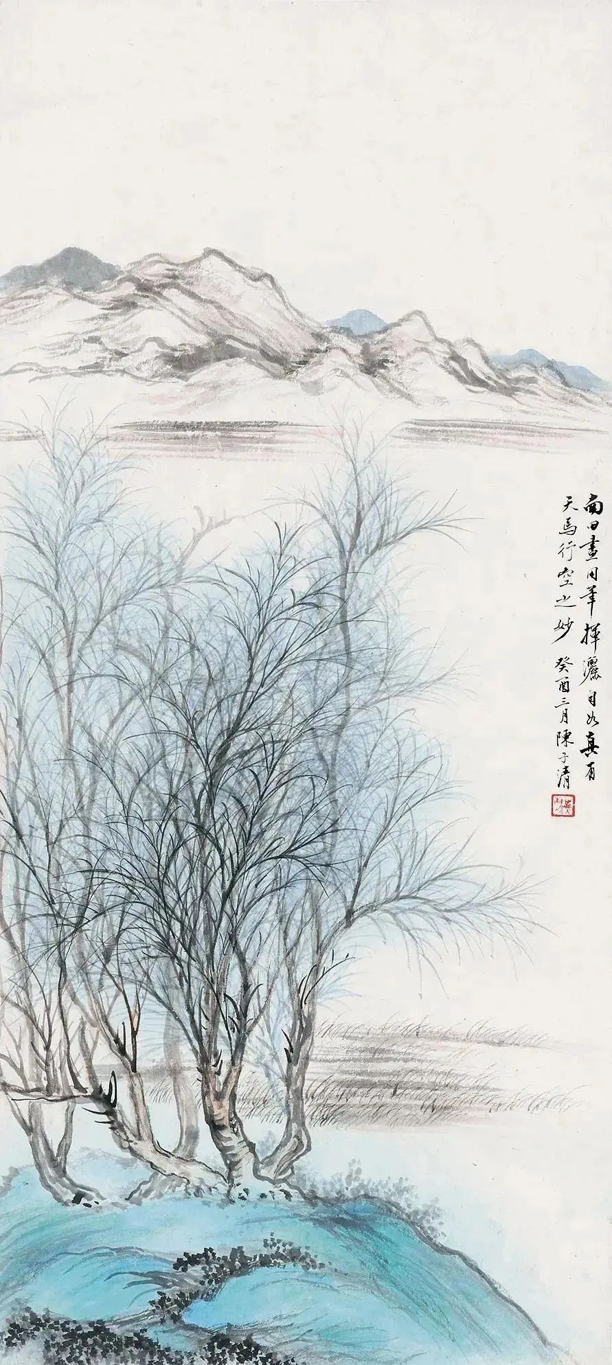 陈子清(1895-1946) 原名晋,字子清 以字行,号俊实、白斋 陈子清出生一个书香门第家中,自小刻苦勤奋,曾以学业优秀毕业于草中学。 1924年随表兄吴湖帆至沪,于蒿山路租屋合办书画事务所,吴湖帆静居楼上潜心艺事,陈子清则办理楼下事务。 善作山水,其作画树石用干笔点擦、加湿墨浑托,施青赭烘染;用笔以中锋为主,干脆利落,清秀中富雅气,严谨中又带一股文人的散漫气息,赏来澹泊秀雅,让人回味!