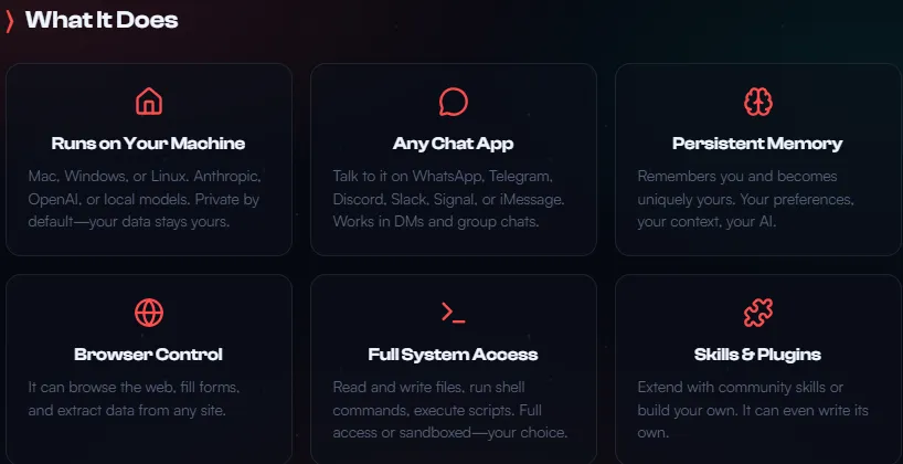 简单来说,它是一个开源的、部署在本地的自主AI 自动化引擎。它的核心原理可以概括为:将强大的大语言模型(如Claude 4.5 或 GPT-5)封装进一个具备系统权限的闭环操作系统中。