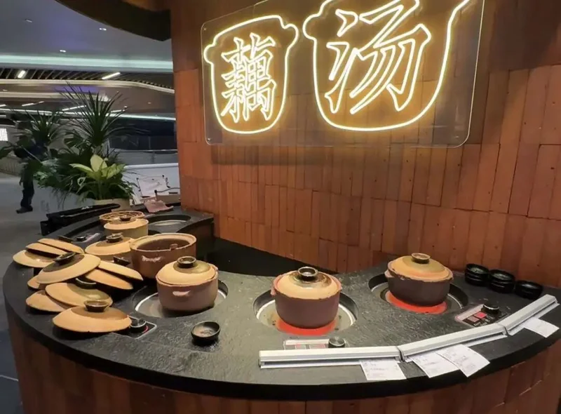 另一方面,是藕汤作为主打的菜品优势,在消费者“谈预制色变”的当下,每日现煨的藕汤带着浓浓烟火气,自然成了消费者的新选择。因此,很多主打藕汤的品牌,都会在门口摆出一排砂锅,现煨藕汤,用热气与香气来招揽消费者。