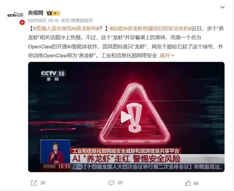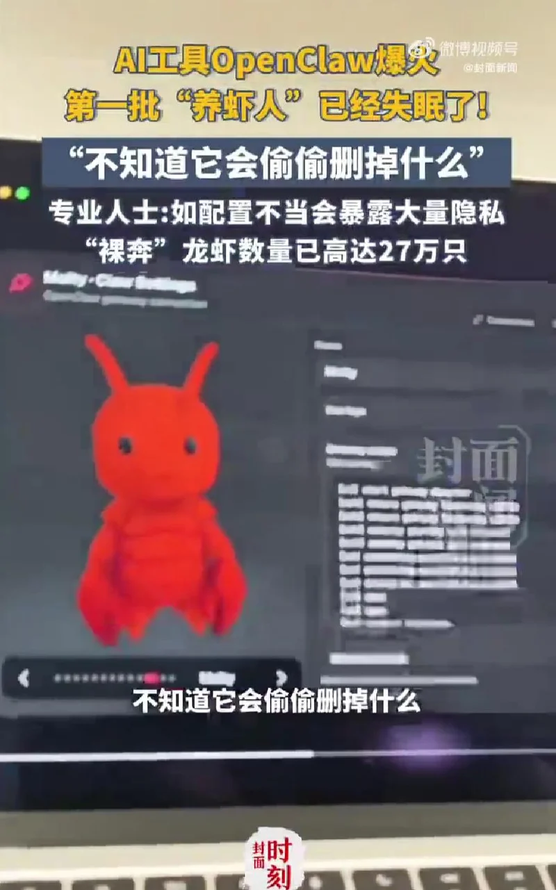 专业人士称,在配置不当的情况下会直接暴露在互联网上,只要被扫描到,任何人都可以尝试连接这只“裸奔的龙虾”,获取用户数月内的私人消息、账户凭证、API密钥等敏感信息。