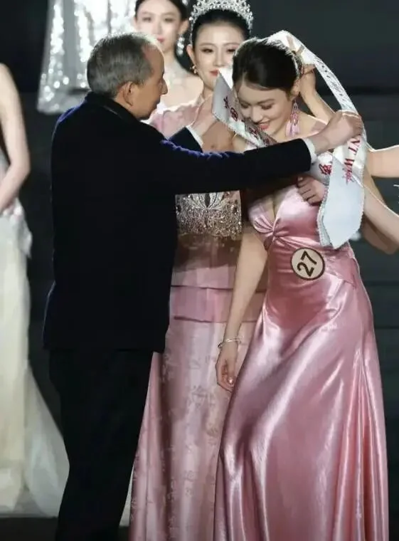 在最终的颁奖环节中,艾柯莱・艾山江则身穿一袭淡粉缎面礼裙走上舞台中央,温柔动人。这条裙子褪去了前面几个环节的厚重感,以更轻盈的设计定格了她的荣耀时刻。