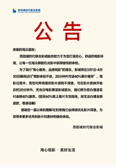 平时看了烂片大家第一反应就是退钱,没想到现在真有电影院把这个政策给落地了?