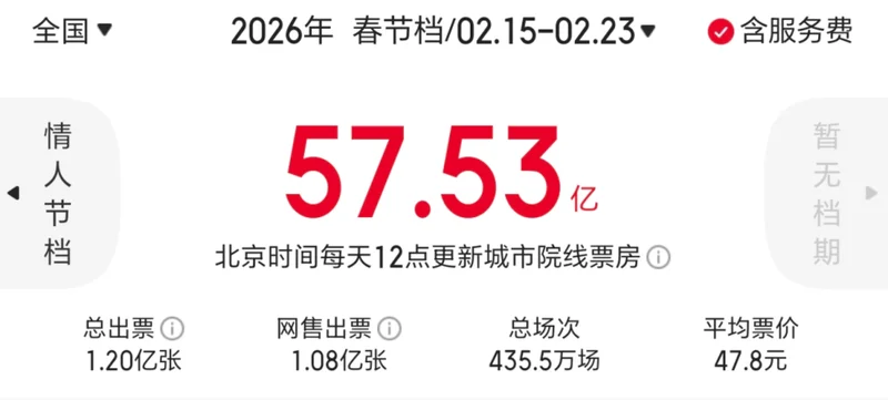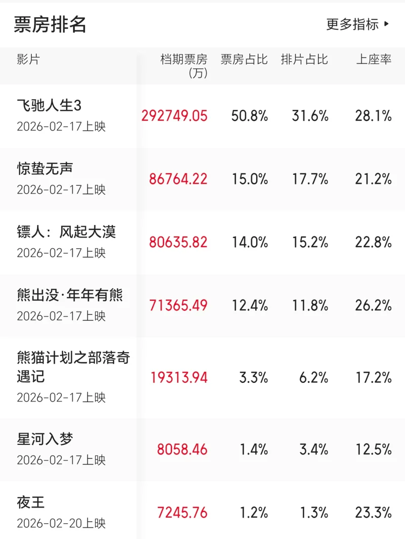 还有一点特殊的,今年春节档,全国影院一共排了435万场电影,创下了春节档放映场次的历史纪录,足可见扶持力度之大。