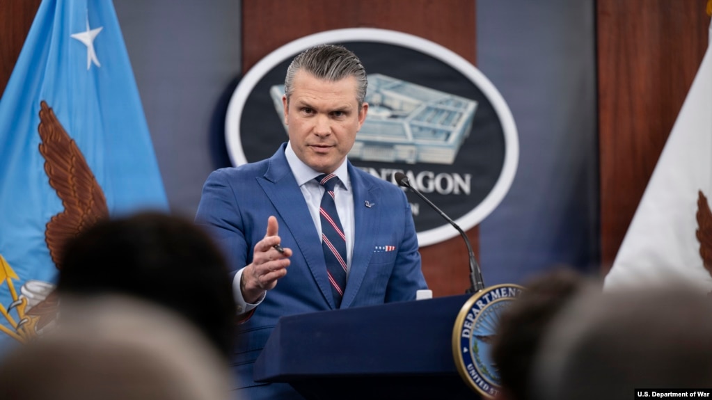 美国战争部长海格塞斯就美国和以色列对伊朗发动的军事行动的最新消息举行记者会。(2026年3月10日)