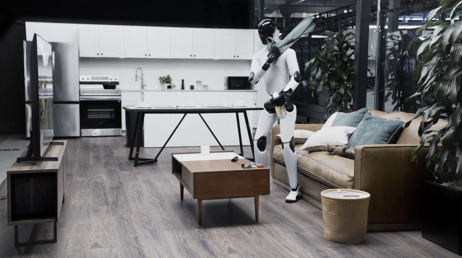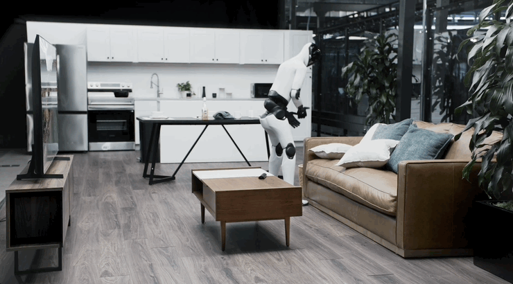 这次,其机器人能够完全自主、端到端全流程整理客厅了。