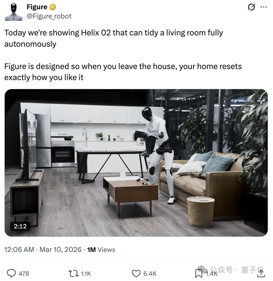 机器人全程自主收拾客厅:端到端390亿估值量子位