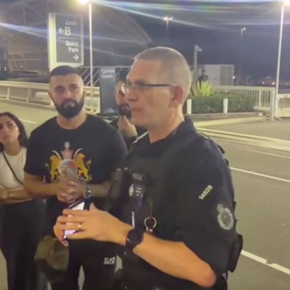 机场外拍摄到的一段画面显示,一名澳大利亚警察与现场人群交谈,被问到是否有更多伊朗球员在澳大利亚寻求庇护时,他表示:“有两人,就这样,飞机马上就要起飞了。”这一消息,也让在场的支持者,欢呼雀跃。