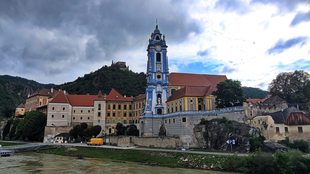 醒目的蓝白相间塔楼属于巴洛克风格的杜恩施泰因学院教堂