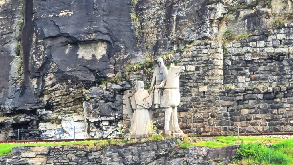 在杜恩施泰因附近的多瑙河岸边,英格兰国王狮心王理查的纪念雕像。雕像描绘理查与吟游诗人布隆德尔的传说场景:布隆德尔通过歌声寻找并确认被囚的国王。据史载,理查在第三次十字军东征归途中被奥地利公爵利奥波德五世俘获,并被关押于杜恩施泰因城堡。。