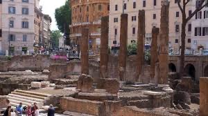 站在银塔广场的台阶上,脚下是考古区残存的四座神庙。夕阳把两千年的石头染成蜂蜜色,一只花猫从废墟里钻出来,在断石上伸了个懒腰,又钻回阴影里。它不知道自己睡着的石头下面,是庞培剧场的门廊,是元老院临时议事堂的地基。