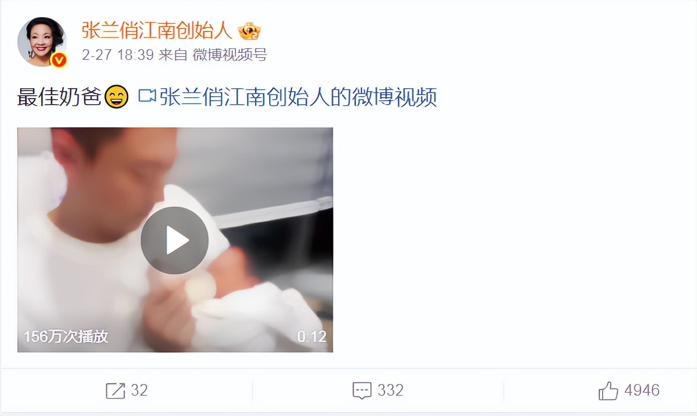 起因是,张兰去医院看孩子的时候,拍下了汪小菲给小儿子拍奶嗝、喂奶的视频。之后不但发到了网上,给孩子取名“小七宝”,还给汪小菲安了个“最佳奶爸”的头衔。