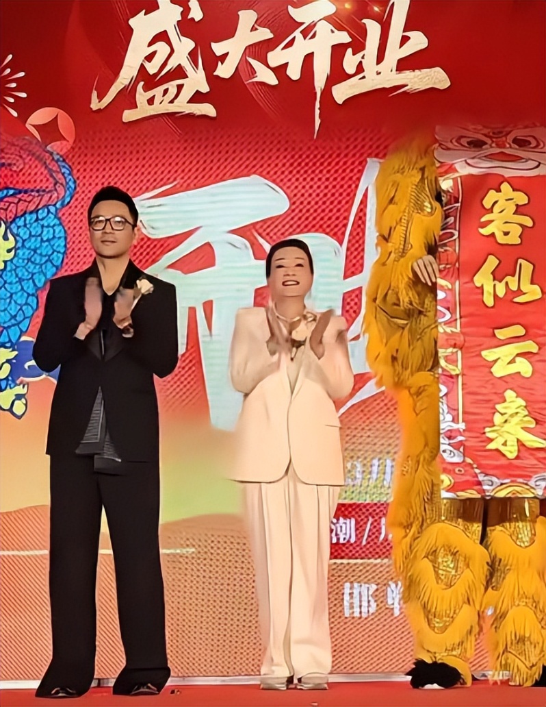 而汪小菲,也站在张兰身边,母子俩一起亲自剪彩。