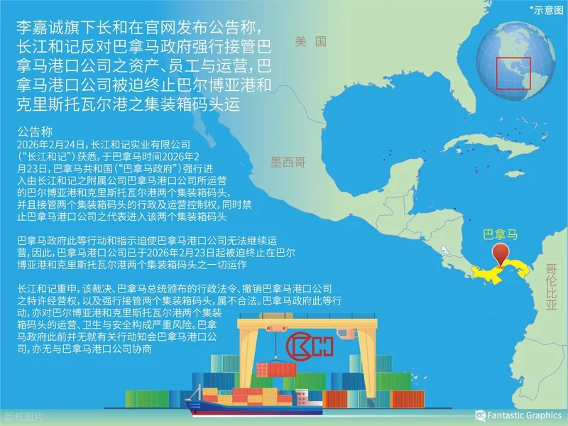 巴拿马运河两端的巴尔博亚港和克里斯托瓦尔港是巴拿马最大的两个港口,1997年时,香港长江和记实业便获得了这两处港口的专属运营权,具体的运营由长和旗下的巴拿马港口公司负责。