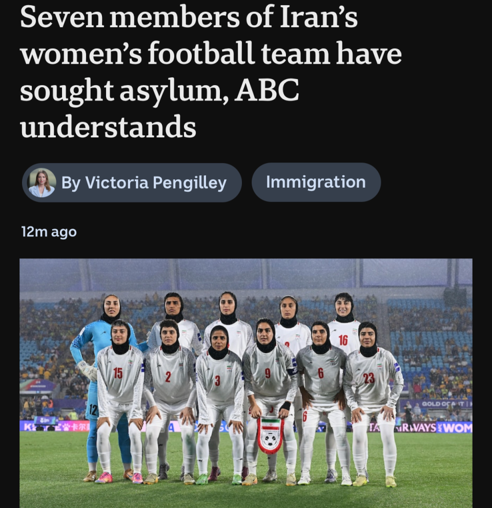 而其他伊朗女足球员则和队伍一起,在今日早些时候从布里斯班机场飞往悉尼,然后计划从悉尼飞往亚洲,再在未来几天经第三国由陆路入境伊朗。