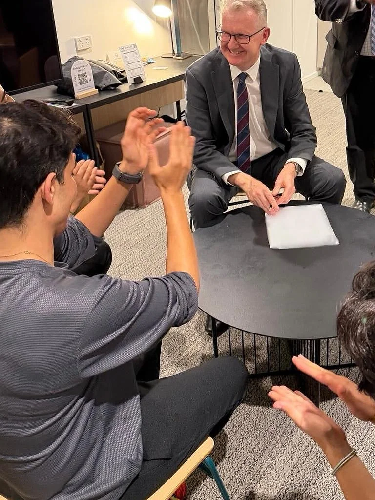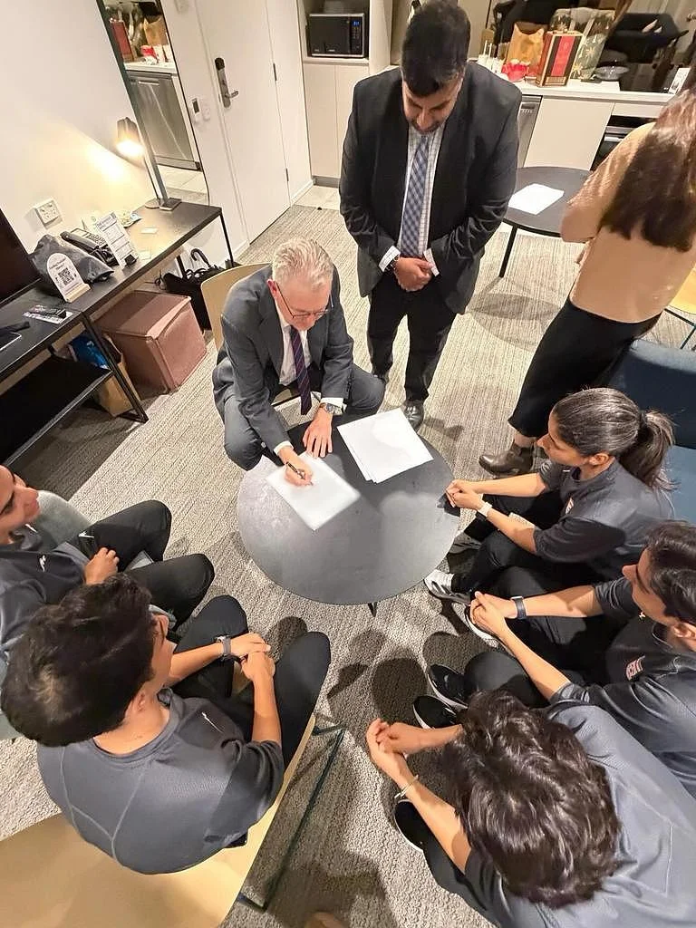 内政部长 Tony Burke 与获得庇护的伊朗女足队员。图片来源:Instagram