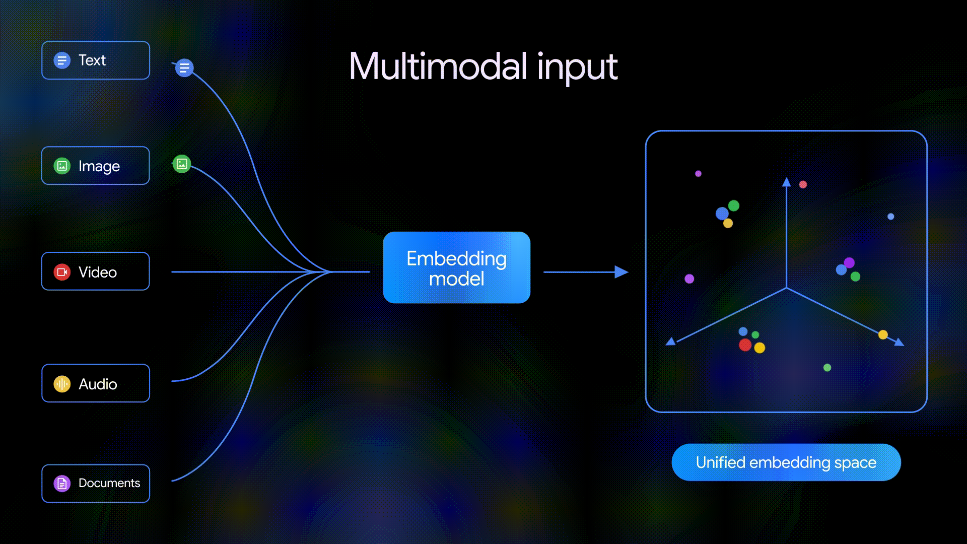 Gemini Embedding 2基于Gemini架构构建,将嵌入能力从纯文本扩展至五类输入形式: