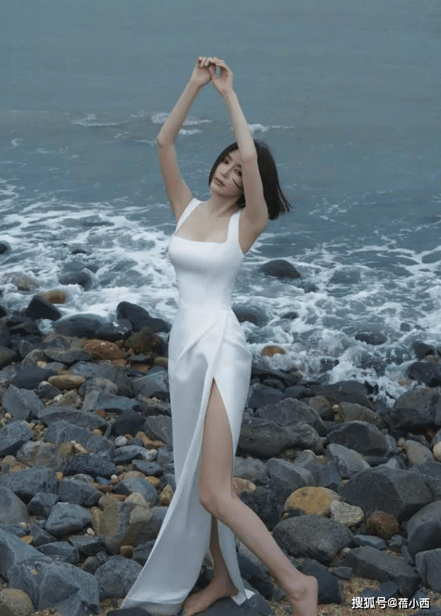裙子的面料带有珠光的设计,所以在自然光下会反射出一种别样的光泽感,反而会让这条裙子看起来更加的高贵和典雅。不过秦岚穿这条裙子也是很有小心机的,高开叉的设计秀出一双大长腿,怎么看怎么迷人。