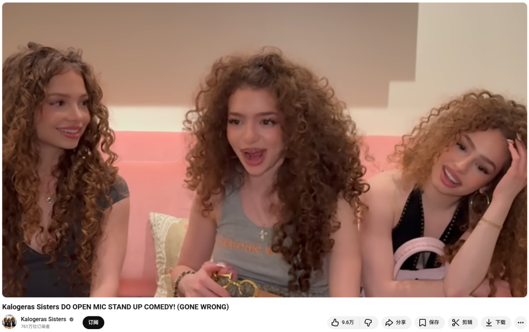 1月21日,这几位来自加拿大的姐妹Sunday Kalogeras、Demitra Kalogeras、Eliana Kalogeras,以及经常和她们合作的内容创作者朋友Noah Risling,登上了这家俱乐部的舞台,并把整个经历拍下来发布在她们的YouTube频道上,标题为“Kalogeras Sisters DO OPEN MIC STAND UP COMEDY! (GONE WRONG)”。这个频道拥有 740万粉丝。
