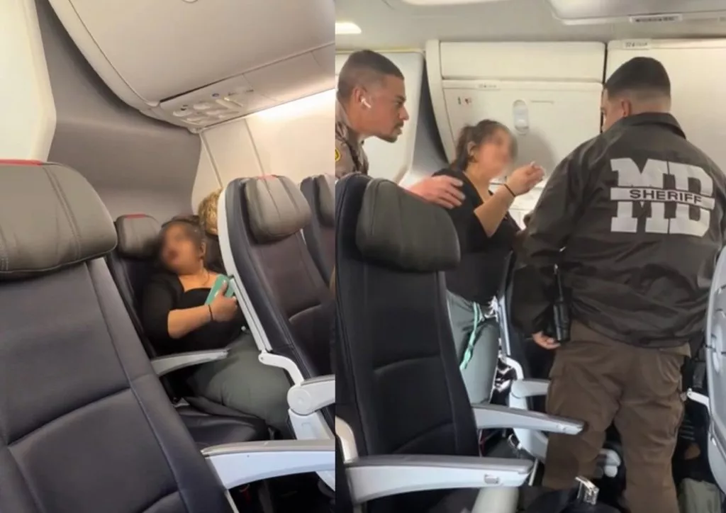 @jcmack03 A drunk lady on an American Airlines flight from Miami to Tampa refused to use headphones and was loudly playing videos from her phone. The flight attendants politely asked her to use headphones before we even left the gate, and the lady immediately got angry, rude and belligerent. She was shouting and cursing at employees and other passengers. It continued until law enforcement finally came and thankfully removed her. The American Airlines employees handled it very well and were respectful the entire time. Just a wild situation. Never in my life did I think I’d witness this. #airplane #drunk #americanairlines #miami #florida original sound - jcmack03