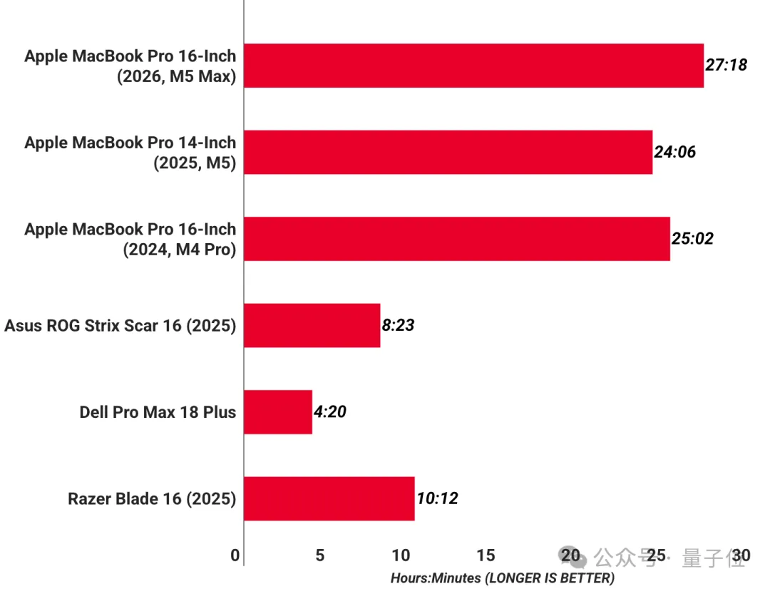 搭载M5 Max的新款MacBook Pro,在实测中跑出了27小时4分钟的视频播放续航?!